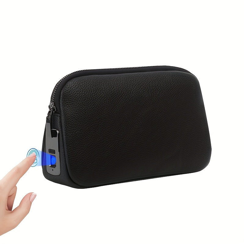 This unisex clutch bag features a cutting-edge fingerprint locking system, providing secure yet convenient access. Available in bold black or vibrant orange, it combines sleek design with advanced biometric security, making it an ideal choice for safeguarding essentials while on the move. Durable and stylish, the bag suits both professional and casual settings.